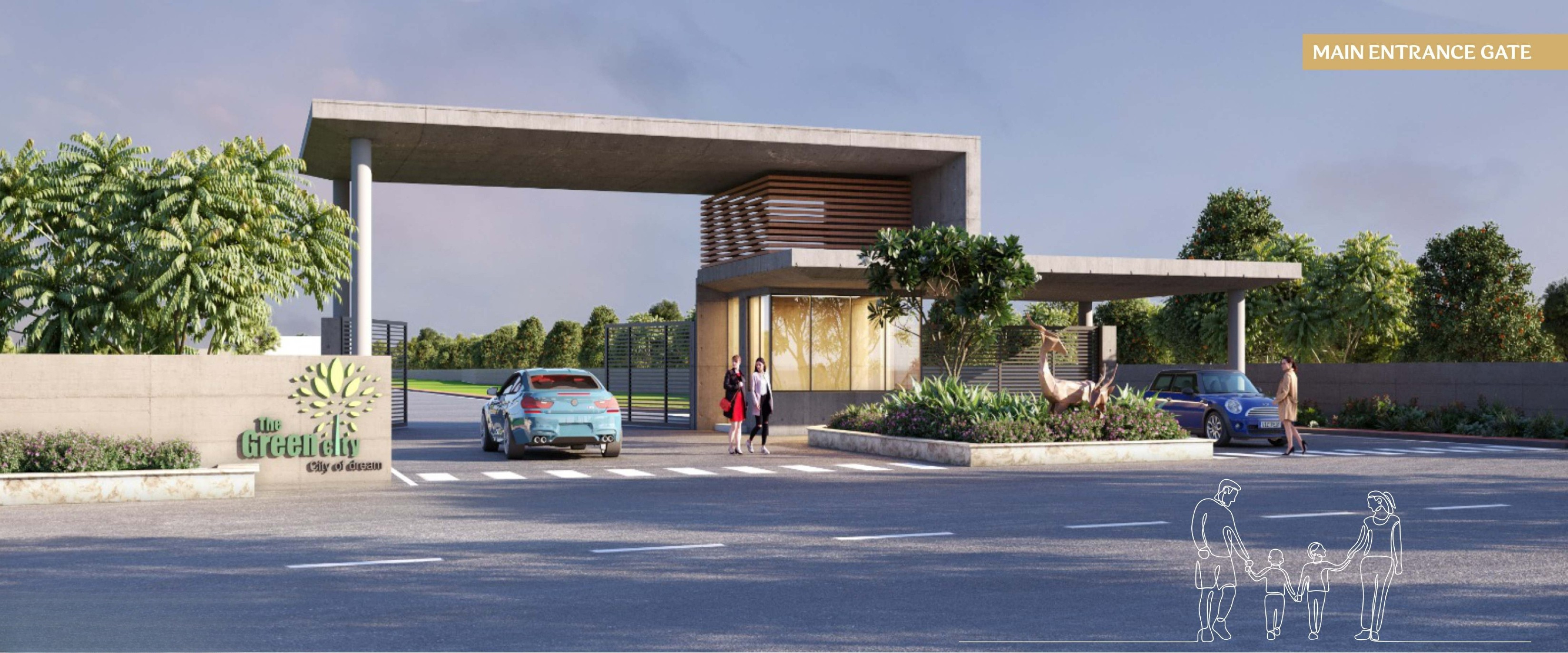 Modern architectural entrance gate with premium finishes, welcoming you to a lifestyle of luxury and comfort.